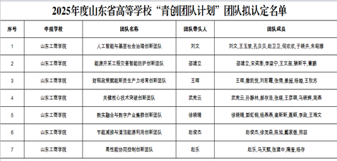 根据山东省教育厅科技处的通知要求,现将2025年度山东省高等学校“青创团队计划”团队拟认定名单予以公示,公示期为2026年1月4日至2026年1月8日。公示期间如有异议,可以书面形式向科研处提出。联系人:潘丽娟 电话:6916168